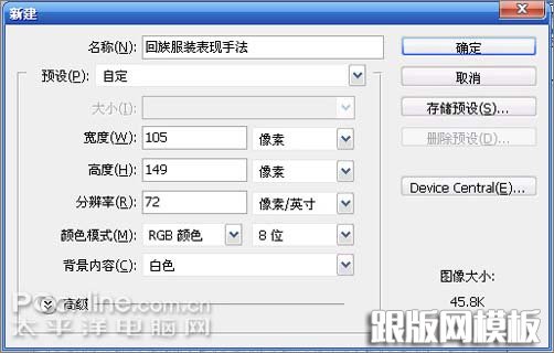 1、打开Photoshop CS4后,执行菜单:“文件”/“新建”(快捷键Ctrl+N),弹出新建文档对话框,把文档的大小与及其它参数设置如图1所示,然后单击“确定”完成新建文档。