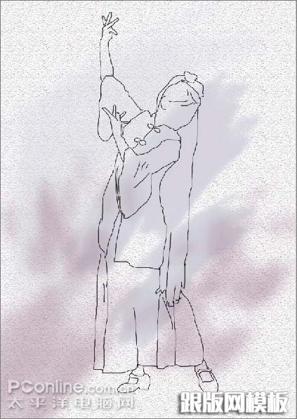 6、利用画笔在“轮廓线稿”图层上画出人物与衣服的轮廓线稿,如图6所示。