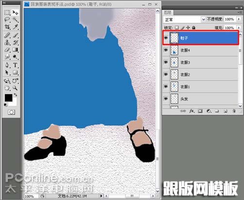 13、再新建“鞋子”图层,把鞋子的颜色填充为黑色,如图13所示。