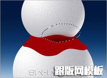 6、绘制褶皱的围巾。新建一层,用索套工具选出要做的地方,再用大小50px,颜色为:#4F0101的软边画笔,在选区内绘制出围巾的褶皱部分。