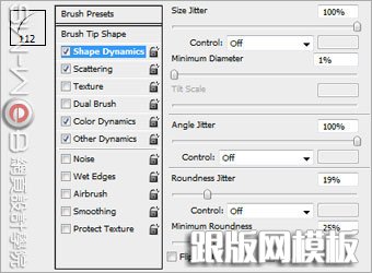 12、选择沙丘草笔刷,设置笔刷的参数如下:
