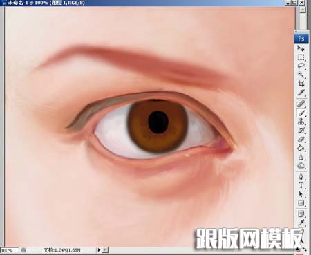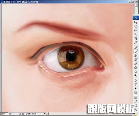 9、调整局部的明暗,让作品的体积感增强,再对某些边缘进行下锐化或模糊的处理,增加效果。这样眼睛部位就刻画完了。大家如果有兴趣可以按我的方法找一张眼睛照片来进行一下临摹。完稿图。