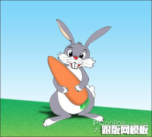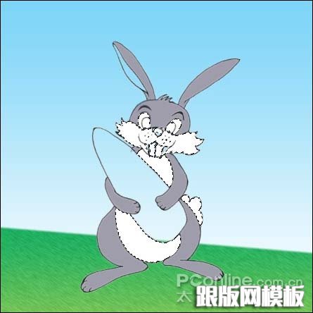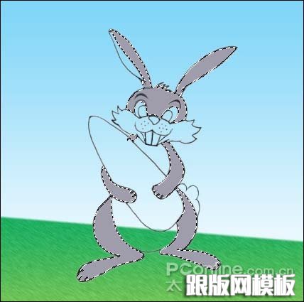 14、下面开始给兔子上色。新建一层,命名为"背",用魔棒工具选出如下部分,填充灰蓝色。