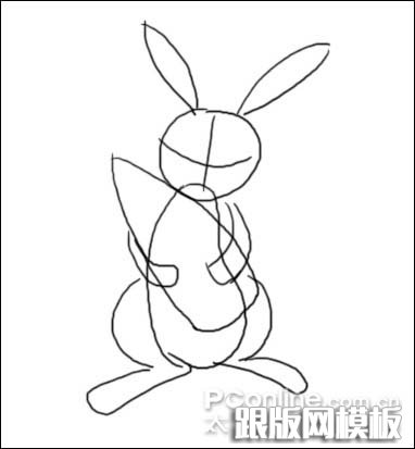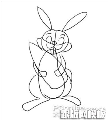 1、先在纸上用铅笔画出小兔子的草图。卡通动物画起来比较容易,下面会用PS演示一下画的过程。