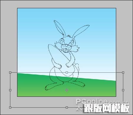 11、Ctrl+T将草地自由变换到如下形状,形成一个斜坡。这样画面就不会四平八稳的,感觉更活泼点。