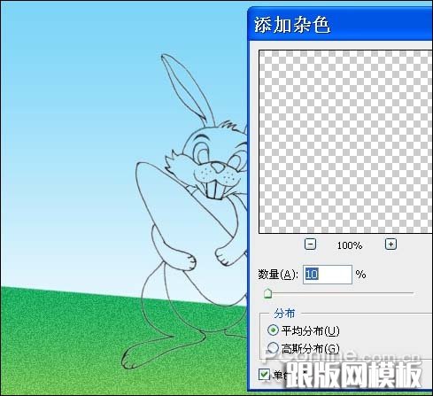 12、执行滤镜/杂色/添加杂色,设置如下,增加草地的质感。