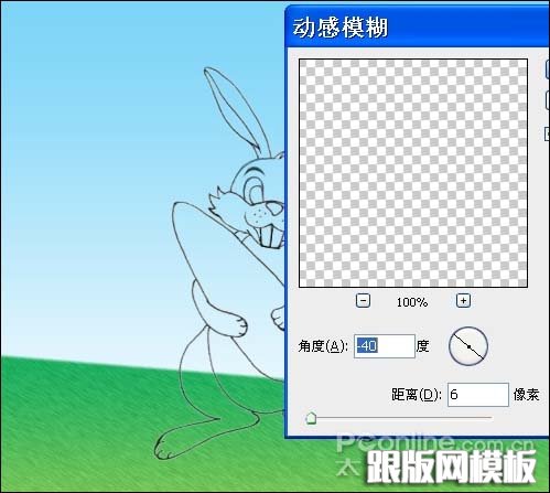 13、再执行滤镜/模糊/动感模糊,完成草地的绘制。