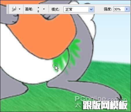 18、用设置如下的涂抹工具将绿色的茎向外快速地涂抹,效果如下。