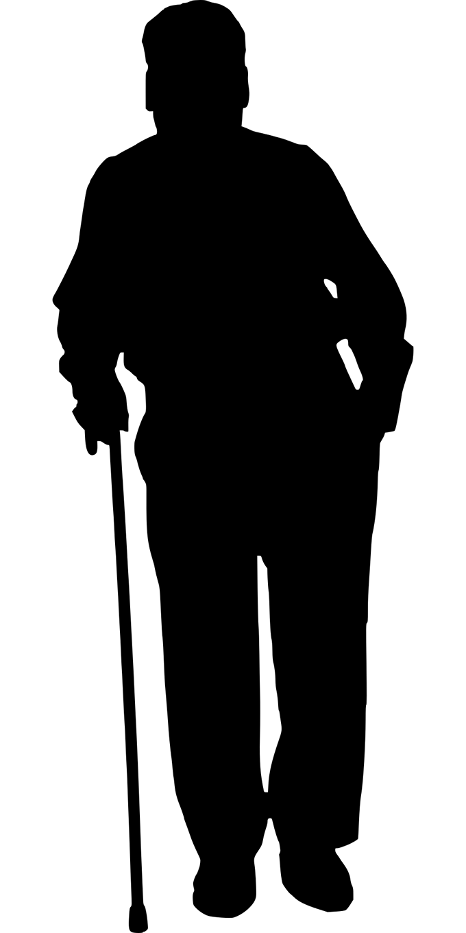 :拄着拐杖走路的老人剪影、被搀扶走路的老人、蹒跚走路的老人、老人弯腰走路、老人骑滑轮车人物剪影免抠图,背景透明老人走路png图片打包下载。