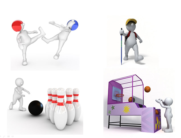 :射箭,拳击,舞蹈,自行车,跑步机,真人cs,瑜伽,跳马,登山,保龄球,篮球,举重,跳高,运动健身系列3D小人素材图片。