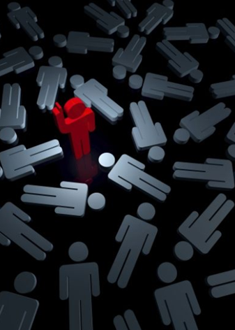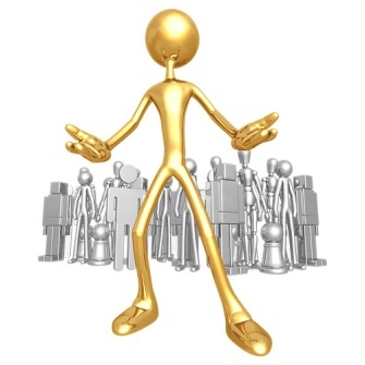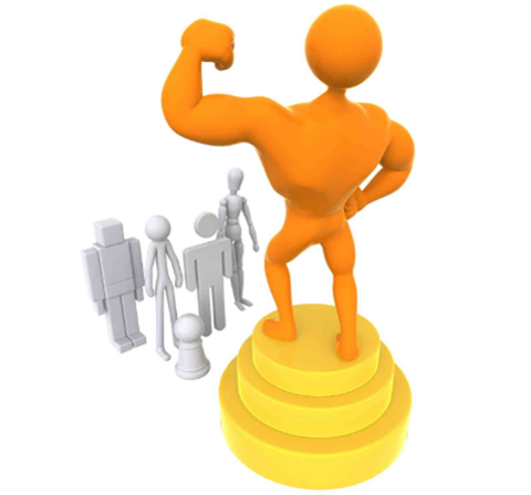 :3D小人ppt素材,小人在团队身份地位凸显,红色3D小人排头兵,独特身份突出体现3D小人素材图片。