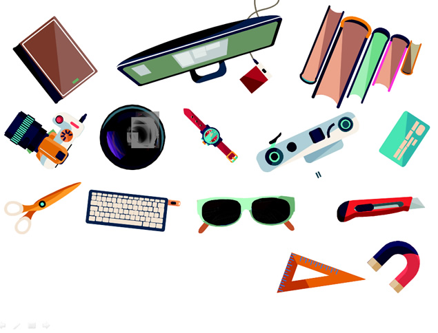:飞机,公文包,笔记本,银行卡,电脑,书籍,摄像头,照相机,手表,眼镜,剪刀,键盘,三角尺,磁铁,办公桌,办公用品,扁平化手型图标,pad,手机,钞票,商务办公桌面工具扁平化矢量图标ppt素材。