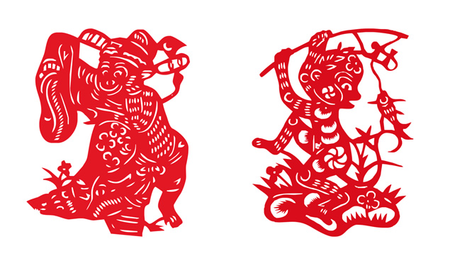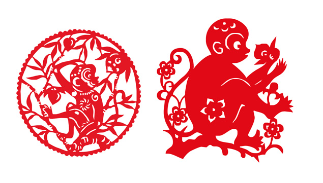 :猴子剪纸,猴子钓鱼,猴子摘桃,2016丙申猴年新年剪纸ppt素材免费下载。