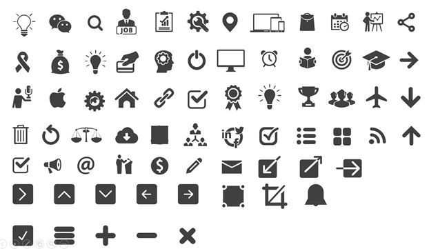 :记事本、文件、书本、铅笔、箭头、毛笔、曲别针、文件夹、投影幕、计数器、天气图标、公文包、垃圾桶、文本对齐、爱心、五角星、对话气泡、信封、麦克风、扩音器、飞机、锁子、扳手、全屏、取消全屏、齿轮、系统配置、app配置开关、闹钟、地理坐标、灯泡、钱袋子、电源按钮、显示器、奖杯、刷新、摄像机、电视剧、耳机、播放器按钮、音符等可更换颜色200+扁平化单色商务常用图标下载。