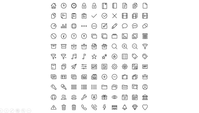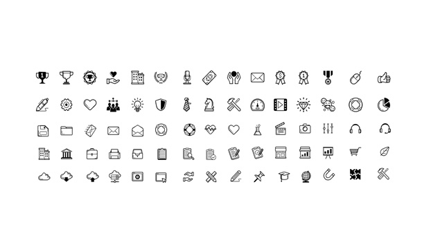 :计算机、报纸、照相机、公文包、奖杯、购物车、信封、曲别针、钥匙等商务线性图标;大拇指、灯泡、眼镜、电话、话筒、地理坐标、插头、纸飞机、图片、储蓄罐等商务图标;银行卡、钱币、美元、购物车、购物袋、钱包等金融线性图标;太阳、月亮、地球、水滴、雨伞、彩虹、多云、雨、闪电、摄氏度等天气线性图标;多场景应用纯色线条图标ppt素材。