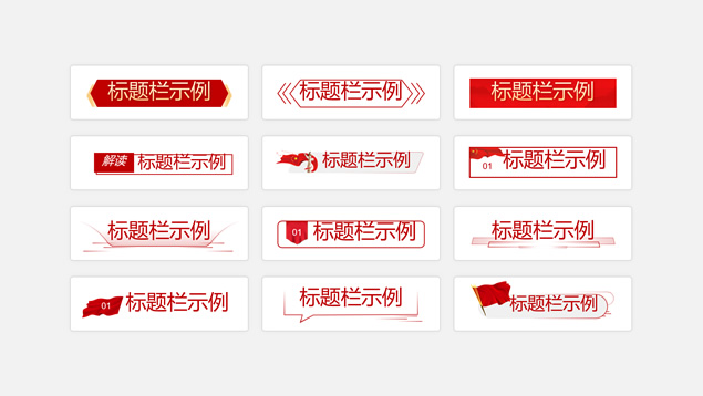 :100款目录页标题栏效果合集打包下载,标题栏修饰效果、商务通用模板目录页、党政风模板目录页、科技风模板目录页共3种风格100款效果打包下载。