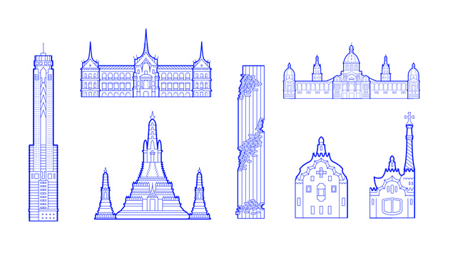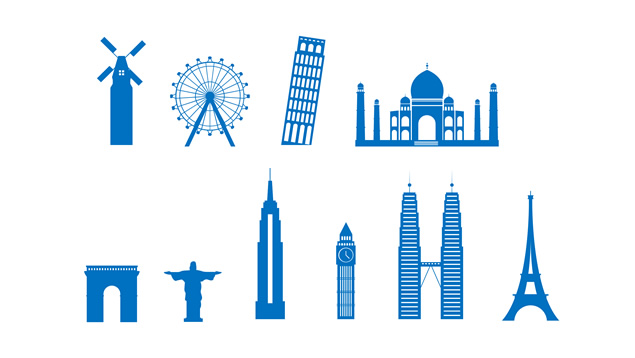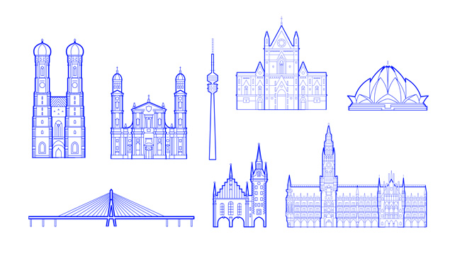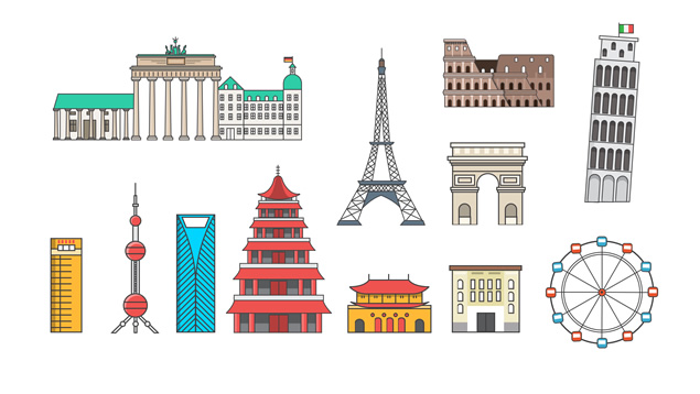 :全球各地名胜建筑矢量素材,矢量线条建筑素材,建筑剪影矢量素材,卡通建筑矢量素材,可以自己修改建筑线条和颜色,共100P+ppt素材打包下载。