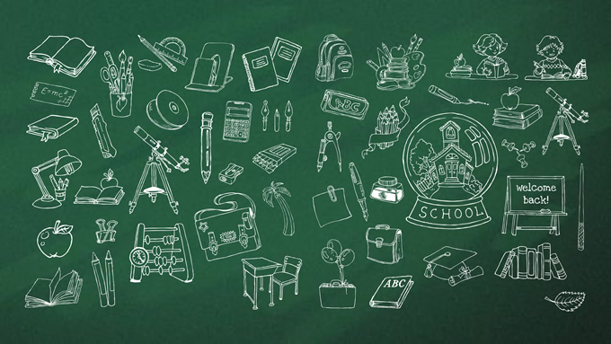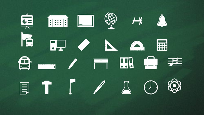 可改色粉笔手绘教育教学矢量ppt图标打包下载
