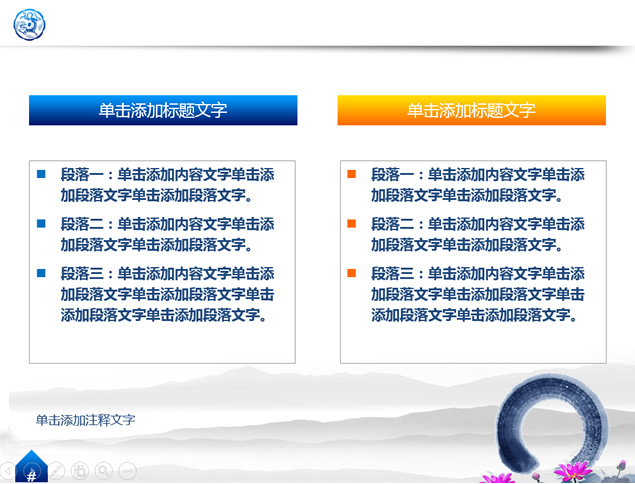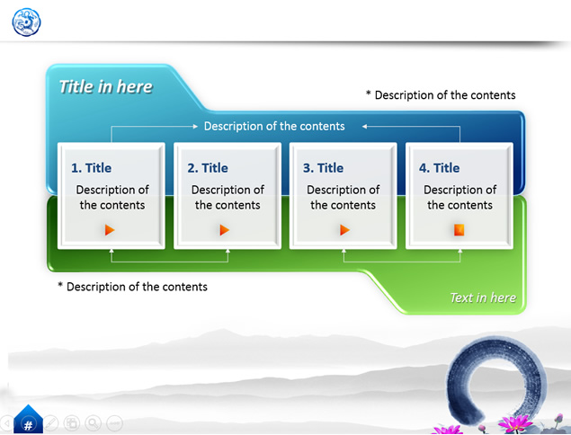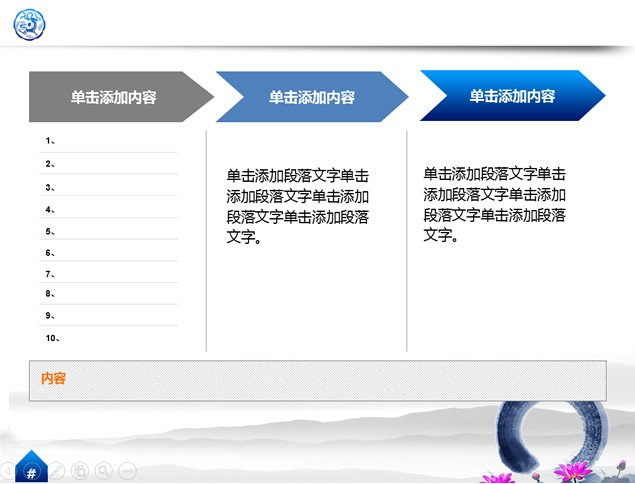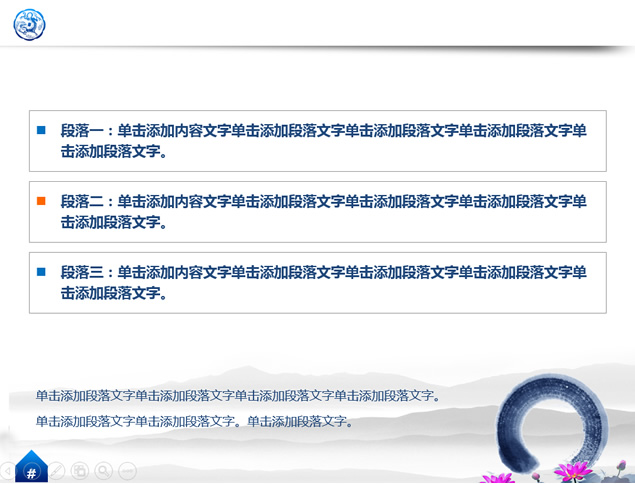 :荷花,水墨,绵绵山脉,古代吉祥图案,精美花边等中国元素中国风精美ppt模板。