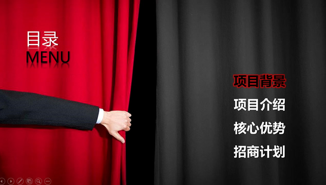 :公司项目介绍,招商加盟项目介绍,适合加盟合作共赢的项目介绍,红黑喜庆ppt模板。