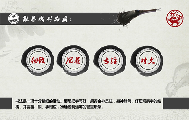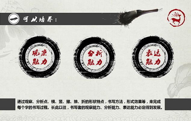 :书法的六大好处,观察能力,分析能力,表达能力,精美素雅水墨中国风ppt模板。