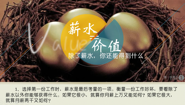 :薪水不等于价值,工作是件复杂的事情,升职,衡量,态度,写给毕业生的18条忠告,正在找工作的毕业生需要学习的ppt模板。