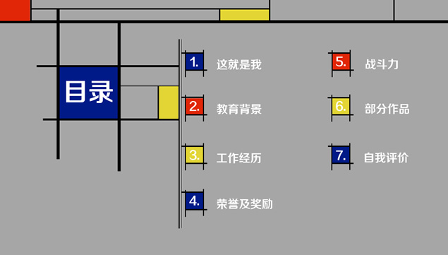 蒙德里安格子画风格个人简历ppt模板