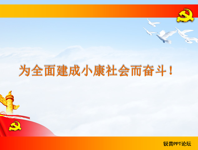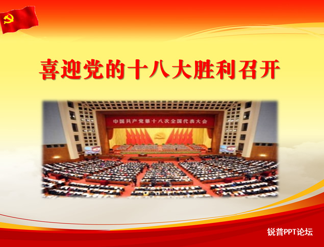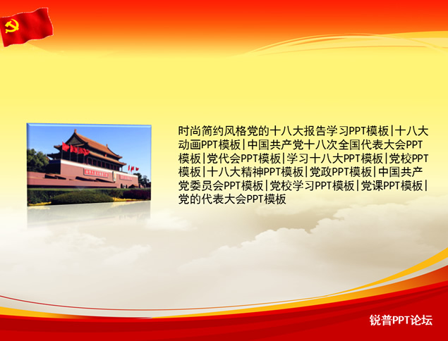 :党旗,人民大会堂,旗帜创意,中国红庄重严肃党建ppt模板。