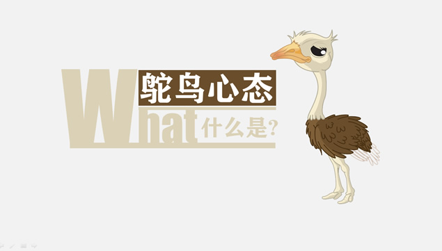 :鸵鸟心态是什么?遇到危险时,鸵鸟会把头埋入沙堆里,以为自己眼睛看不到就是安全,鸵鸟心态的表现,鸵鸟心态哲理故事ppt模板。