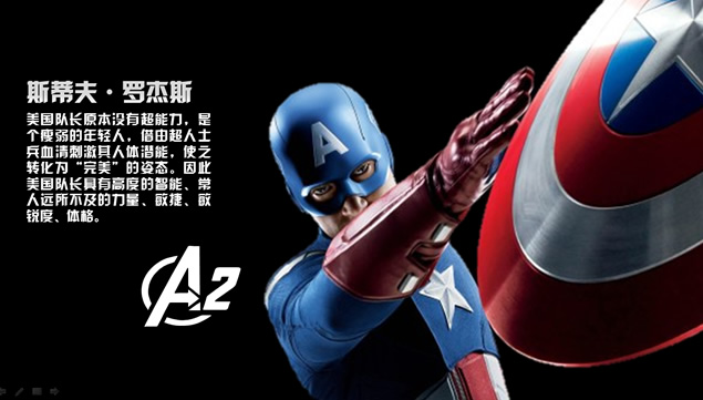 :《复仇者联盟》,《美国队长》,《钢铁侠》等美国大片,电影主要人物介绍,不得不看的美国大片与电影人物介绍ppt模板。