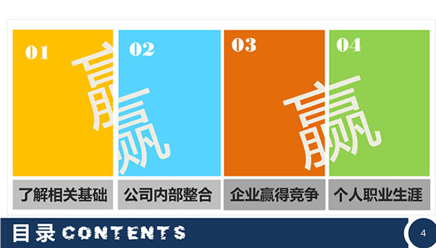 :了解相关基础,公司内部整合,企业赢得竞争,个人职业生涯,《赢》ppt读书笔记。
